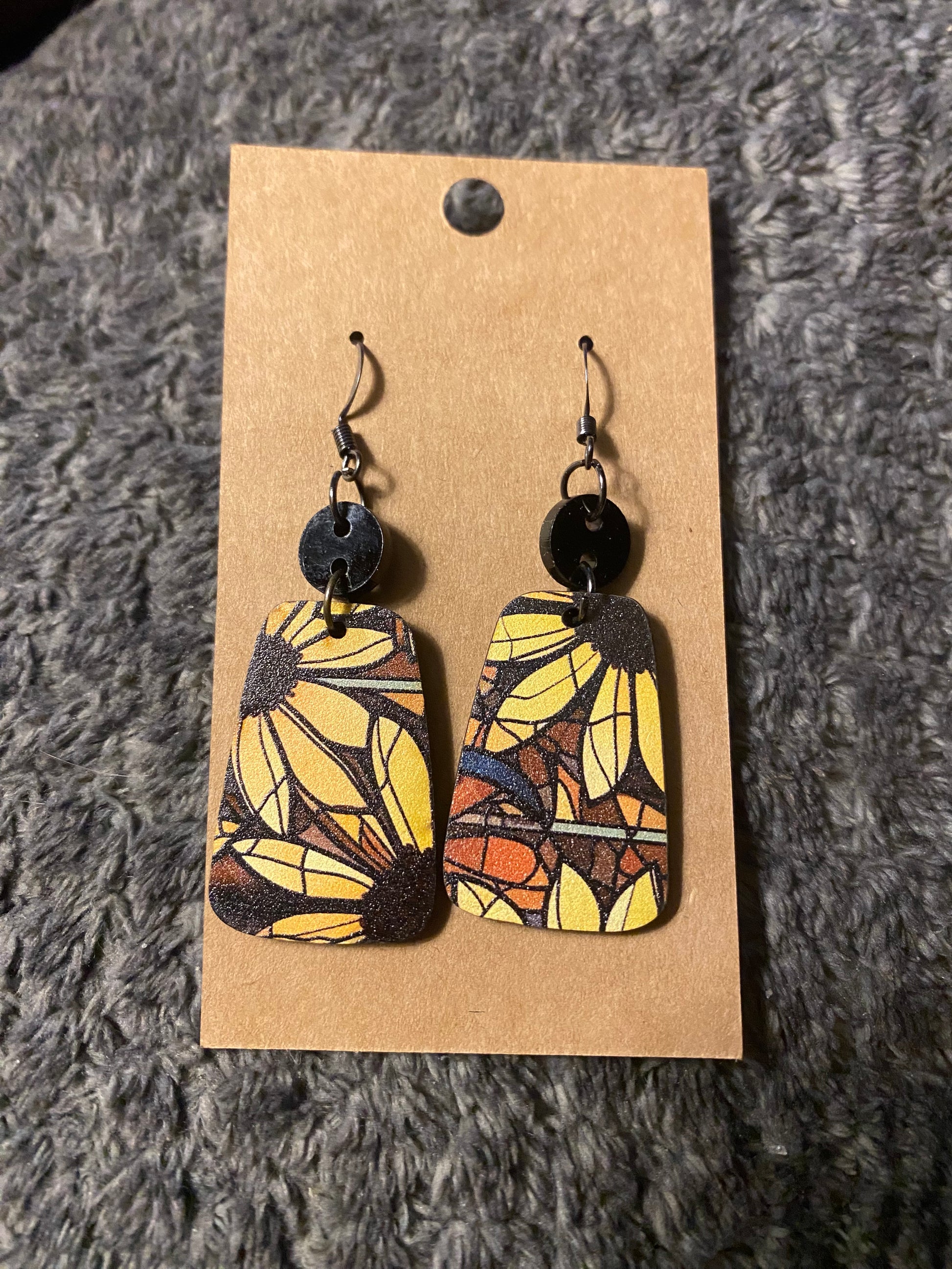 Spruce up your look with these playful Dangle Earrings featuring a charming Sunflower pattern. These quirky earrings are sure to add a pop of fun to any outfit. Perfect for anyone looking to add a touch of whimsy to their style. (Ears will be blooming with compliments!)